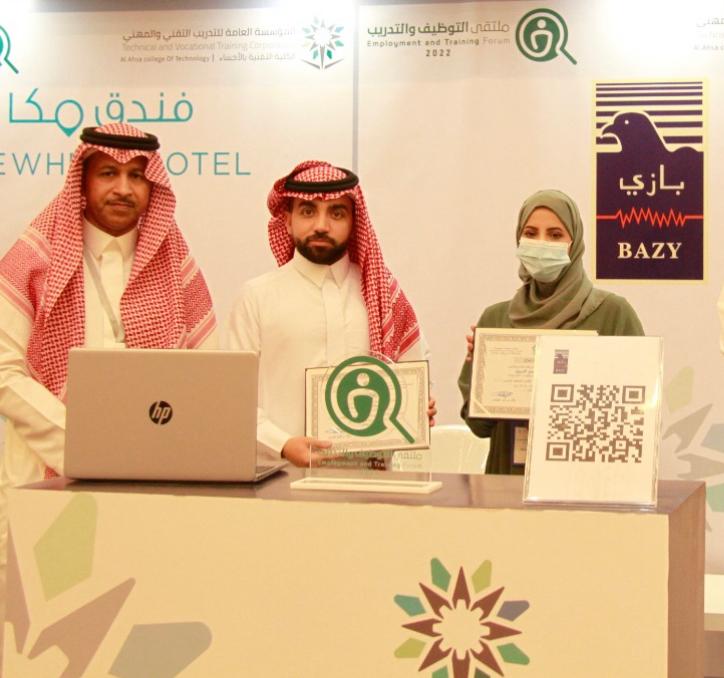 بناءً على دعوة من مدير إدارة التوطين في المنطقة الشرقية تم حضور ملتقى التوظيف المقام في الكلية التقينه في محافظة الأحساء على مدار ثلاث أيام ، وتحت رعاية صاحب السمو الملكي الأمير سعود بن طلال ال سعود محافظ الاحساء بتنظيم المؤسسة العامة للتدريب التقني والمهني.